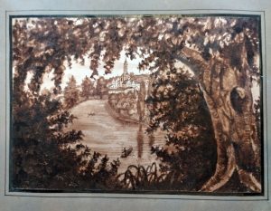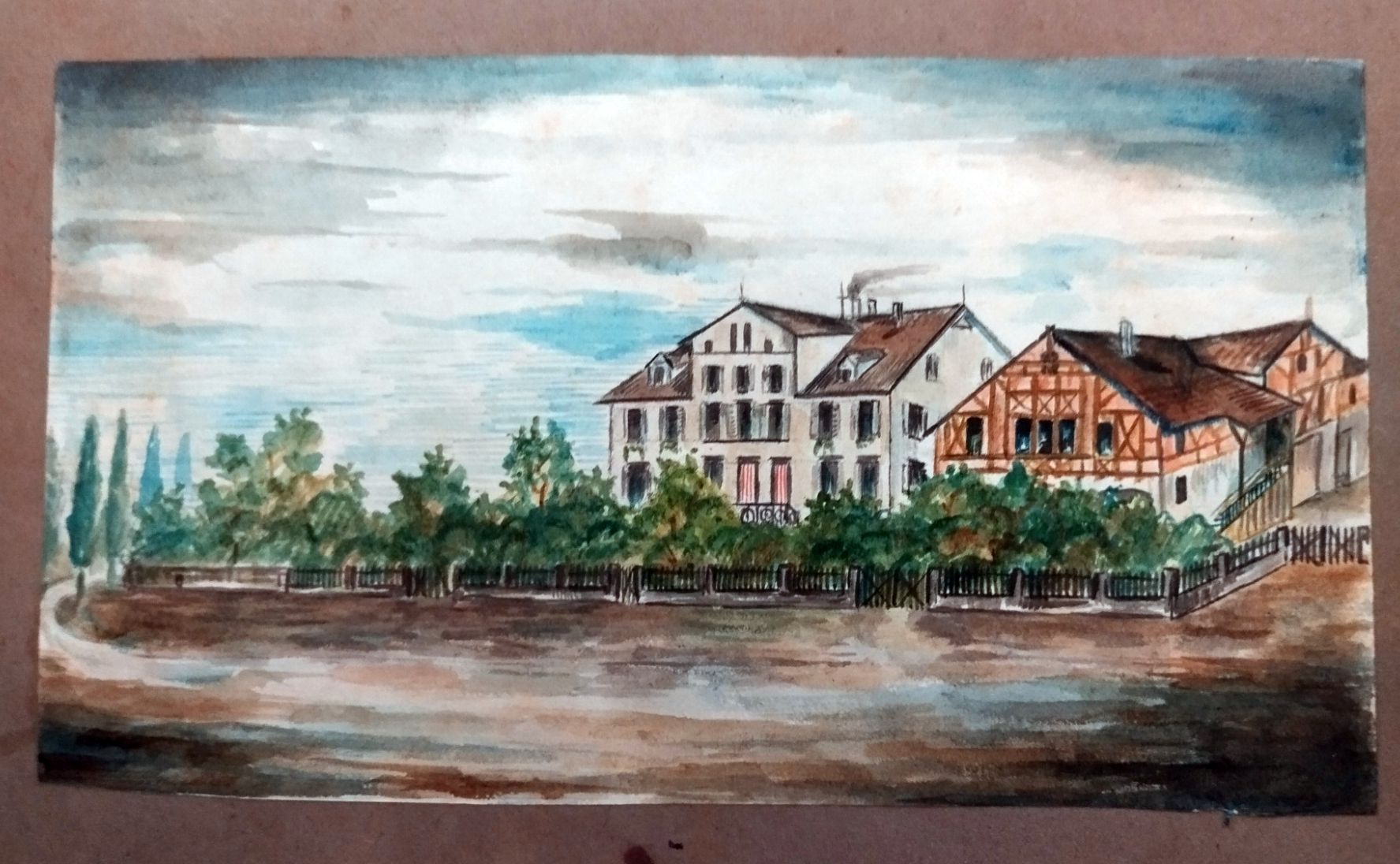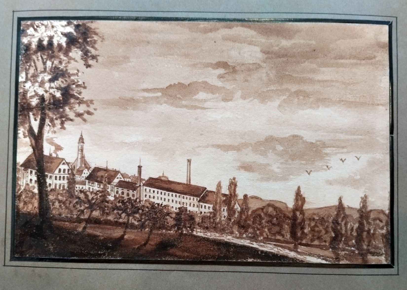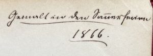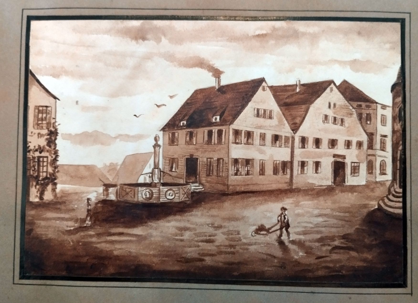 13 Zeichnungen (eine aquarelliert) auf 10 Kartonblättern. Ausgeführt von Robert Wiedersheim. Rote blindgeprägte Lwd. d. Zt. mit goldgeprägten Deckeltitel. 15 x 23,5 cm. Der gebürtige Nürtinger Robert Ernst Eduard Wiedersheim (1848-1923) war ein auf den Gebieten der Zoologie und Anthropologie arbeitender vergleichender Anatom. Seine Mutter, Bertha Friederike Wiedersheim (18251848), geborene Otto, starb wenige Tage nach seiner Geburt. Robert Wiedersheim wurde dann im Haus seines Großvaters, des Fabrikanten Immanuel Friedrich Otto (17911875) in Nürtingen, erzogen. Seine Schulzeit absolvierte er zum einen in Nürtingen und zum anderen in Kirchheim unter Teck dann folgte das Gymnasium in Stuttgart, wo er bei einem Onkel wohnen konnte. Vorliegendes Erinnerungsalbum hat ein handschriftl. Widmung „Meinem lieben Onkel R. von R. Wiedersheim August 1867“ auf dem fliegenden Vorsatz. Des Weiteren ein Eintrag „Gemalt in den Sommerferien 1866“. – Die gekonnt ausgeführten Zeichnungen zeigen wohl die großelterliche Villa, mehrere Fabrikgebäude des Baumwollindustriellen Otto und einige kleine romantische Ansichten. Die Zeichnungen im Format 12 x 17 cm (7) und kleiner. – Etwas bestoßen. Leicht gelockert, die Zeichnungen selbst tadellos.